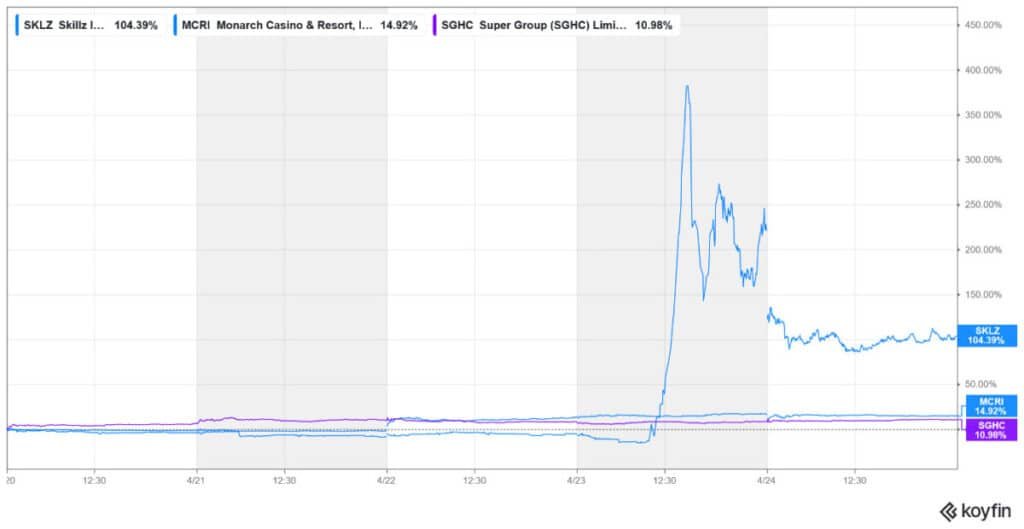 Skillz and Monarch Casinos were among the major gainers last week, while Genius Sports and Las Vegas Sands were the major losers.