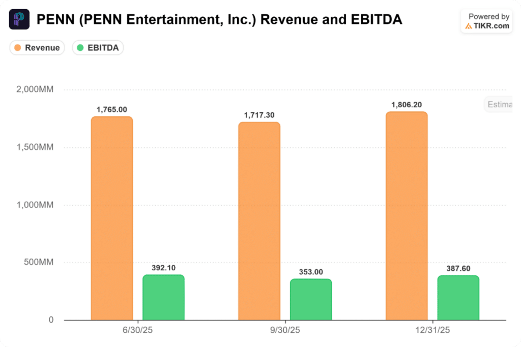 After rebranding its digital strategy, ending its partnership with ESPN to move toward a more integrated approach, the Interactive segment narrowed its losses significantly. It reported an adjusted EBITDA loss of $10.8 million, a major improvement from the $89 million loss in Q1 2025. The markets received the earnings well, and Penn stock soared after the earnings, closing the week almost 9% higher.